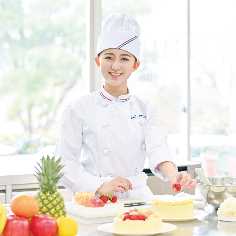 梅花女子大学の実習ユニフォームを着用いただいて、おしゃれな撮影ブースで記念撮影をしていただきます。